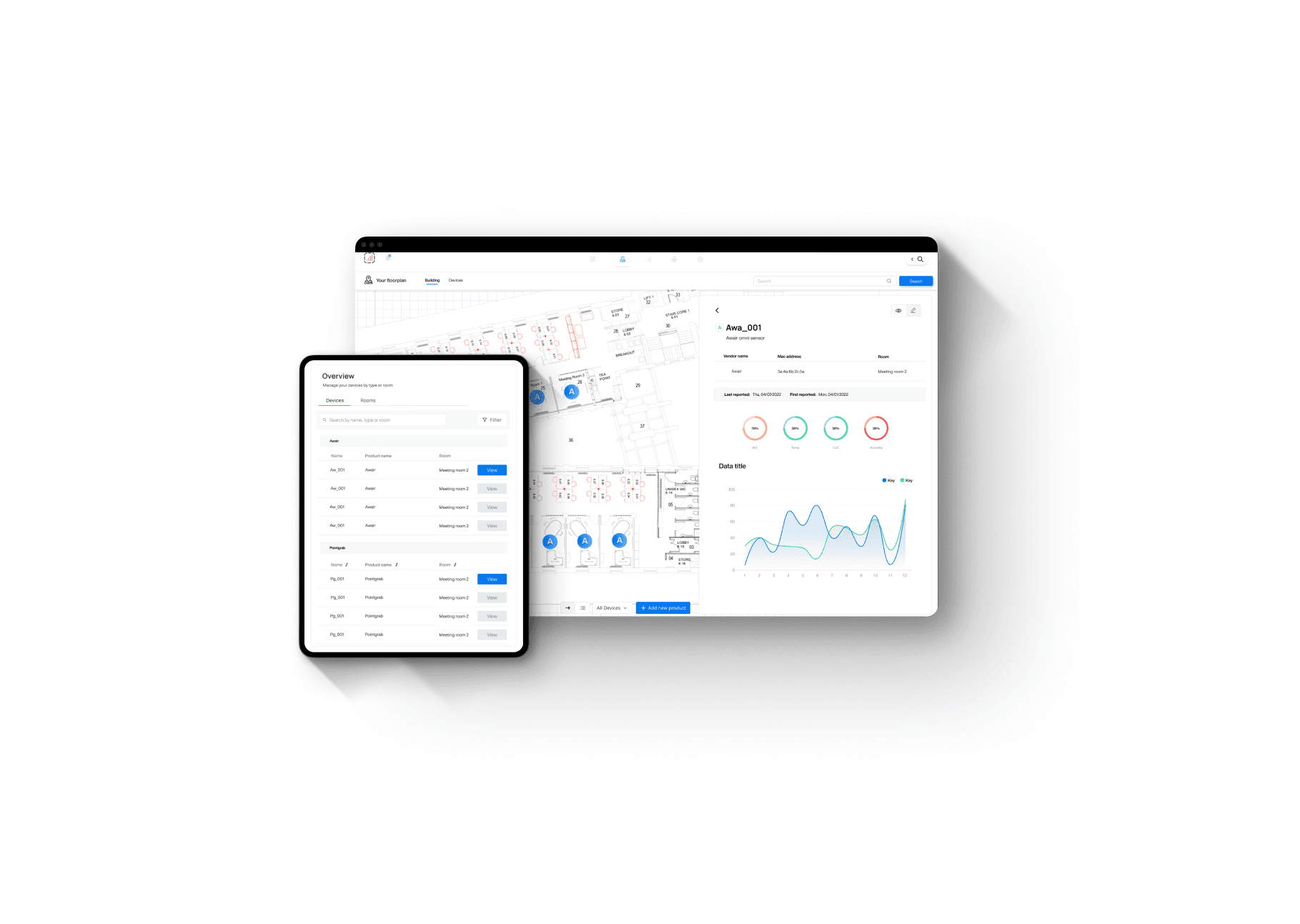The entire system brought forward to us required a centralised hub which allowed the client to monitor various aspects of their building. A simplified and concise way to monitor air quality whilst maintaining a coherent ease of use across the platform was something I pushed the team to achieve with this beautiful and user friendly hub.